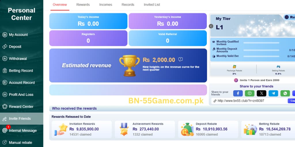 Withdrawing funds from the BN55 app is also quick and secure. Players can log in, go to the Wallet section, choose Withdraw, and select Easypaisa, JazzCash, or Bank Transfer.